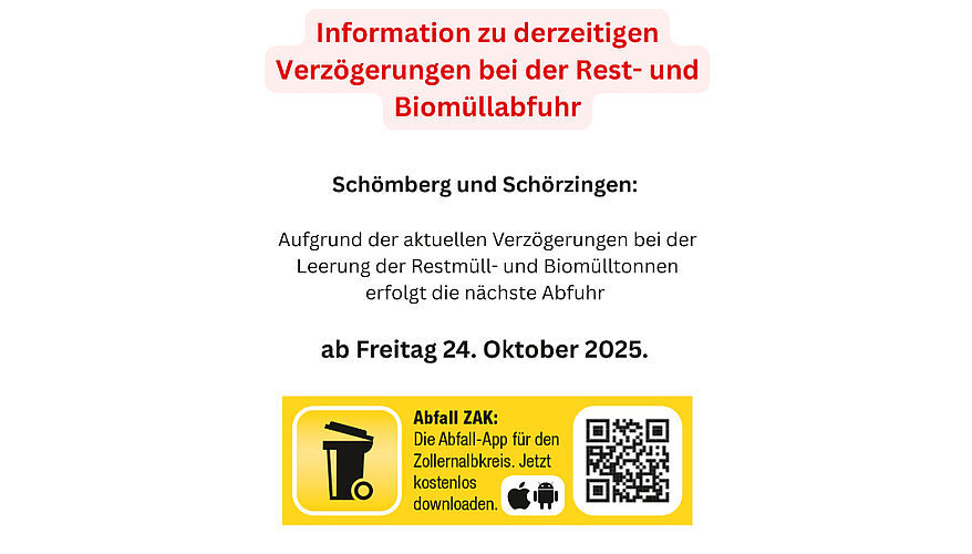 Aufgrund der aktuellen Verzögerungen bei der Leerung der Restmüll- und Biomülltonnen erfolgt die nächste Abfuhr