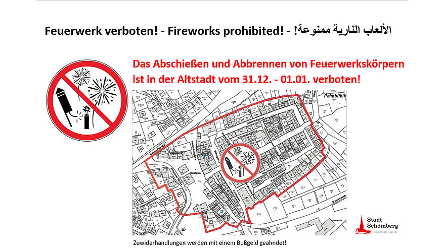 Das Abschießen und Abbrennen von Feuerwerkskörpern ist in der Altstadt vom 31.12. - 01.01. verboten! (Siehe Grafik)